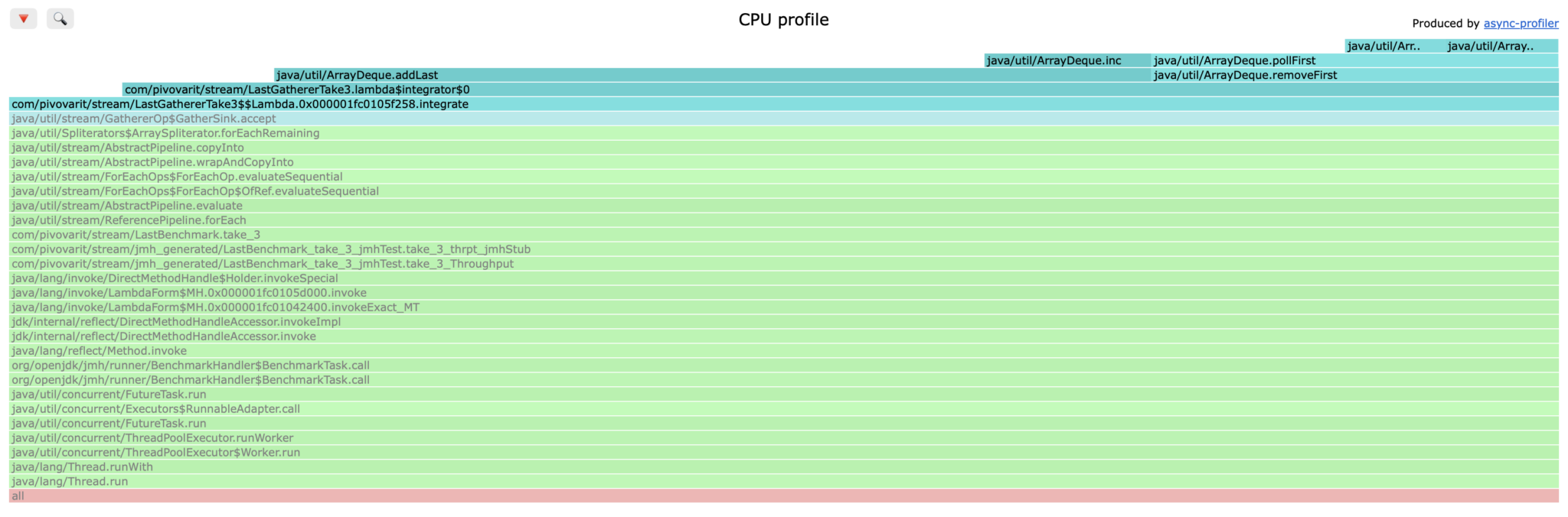 Is this good or bad? Probably good enough for most use cases, but… if you look closely into the flamegraph, you will see that the ArrayList#removeFirst() method takes significant portion of processing time!