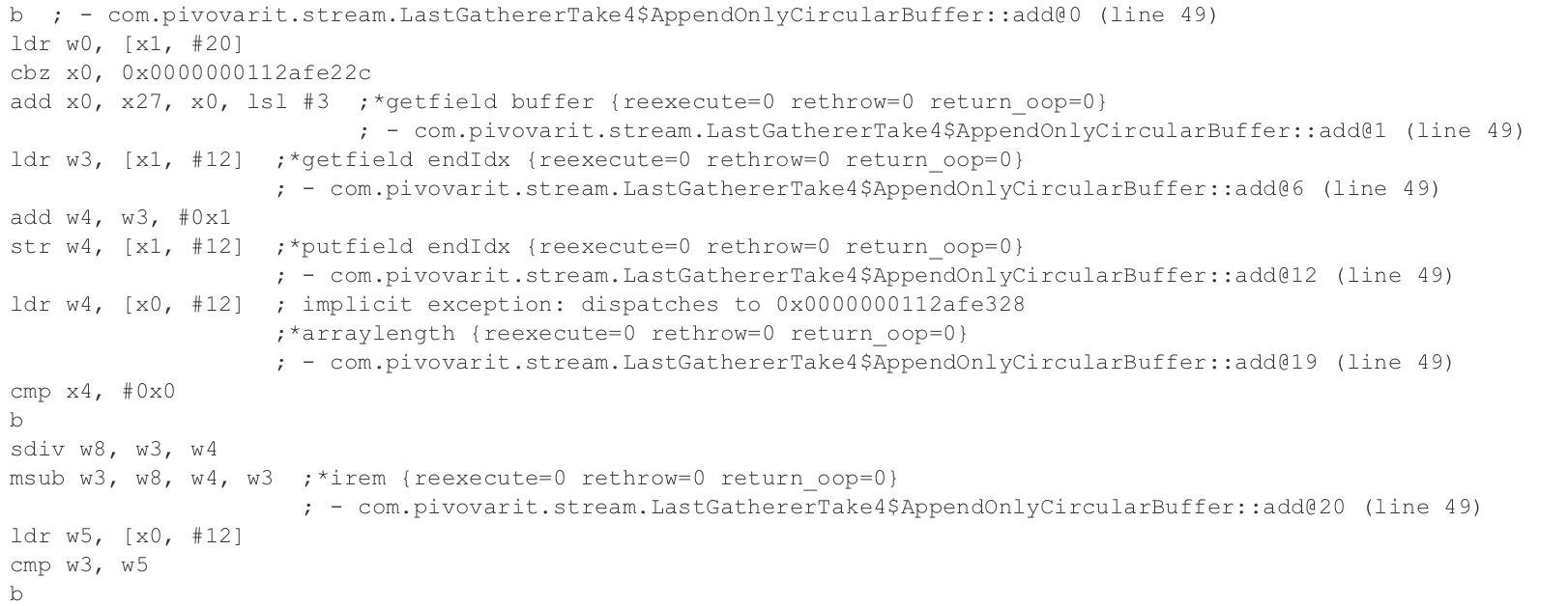 }This is pretty lean already, but let’s go deeper and look up the assembly code produced by JIT: