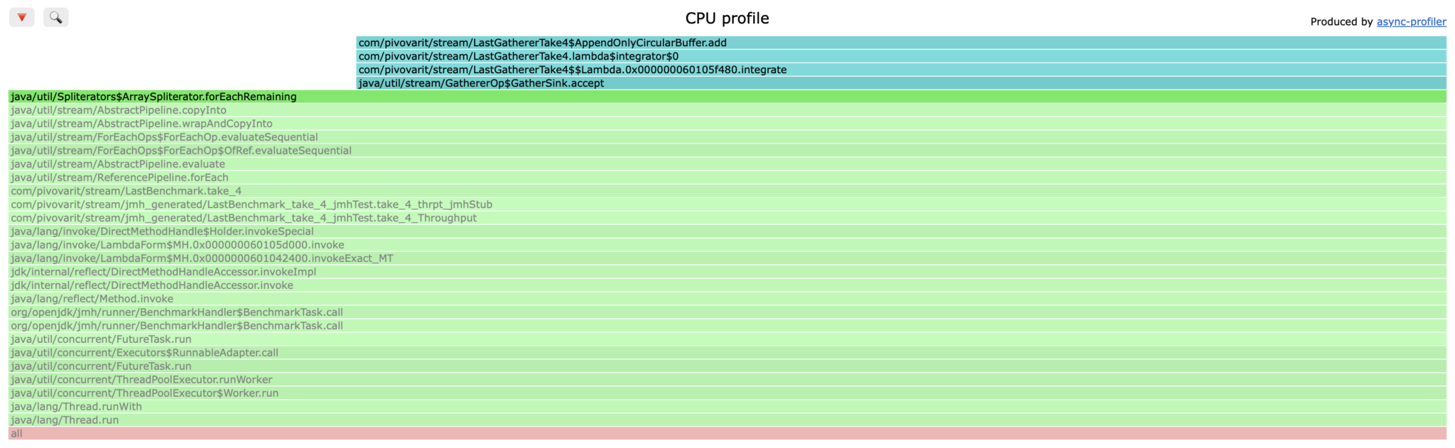 Let’s try to benchmark and profile our creation. We’ll use JMH and async-profiler (conveniently integrated into JMH nowadays).