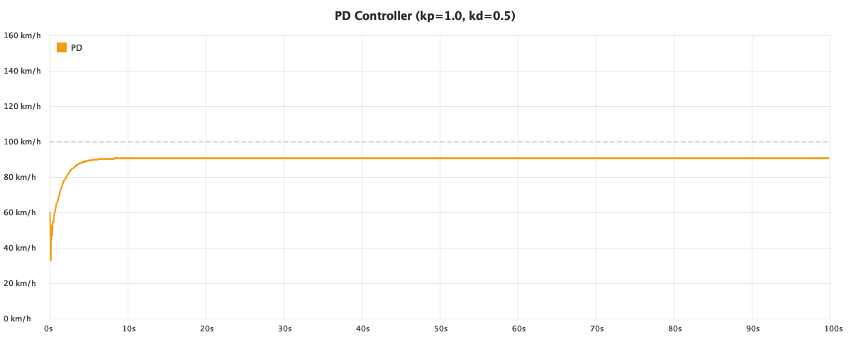 Let’s say we want to get to and maintain a setpoint of 100 km/h.